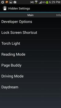 (Developer Options, Lock Screen Shortcut, Torch Light, Reading Mode, Page Buddy)