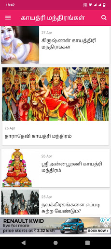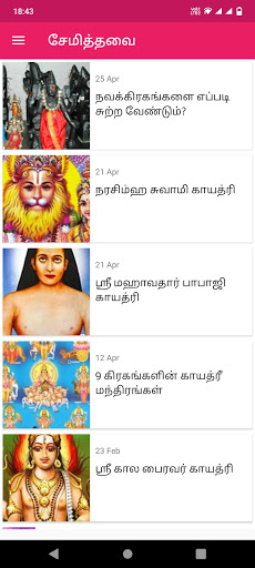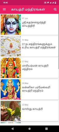 Die Verwendung von 'Gayatri Mantra Tamil' bietet den Gayatri-Mantras der beliebtesten Hindu-Gottheiten an einem Ort an. Jede Gottheit hat getrennte Gayatri-Mantras zu meditieren.