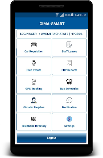 Mobile App für von IT-Abteilung entwickelte GIMIATEX-Mitarbeiter inhouse.