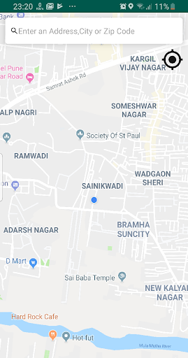 Die App implementiert die Google Maps-API, die den Standort des Benutzers auf der Grundlage von GPS-Berechtigungsberechtigungen nachgibt.Or Das Öffnen der App-Speicherort ist markiert. Wenn der Benutzer nach Orten suchen möchte, wird eine Suchleiste für diesen Zweck bereitgestellt.Erfolgreiche Suche, ein Marker wird auf der Karte markiert. Klicken Sie auf die Markierung, die Navigationsoption wird angeboten.Er-Center-Taste ist ebenfalls vorhanden.