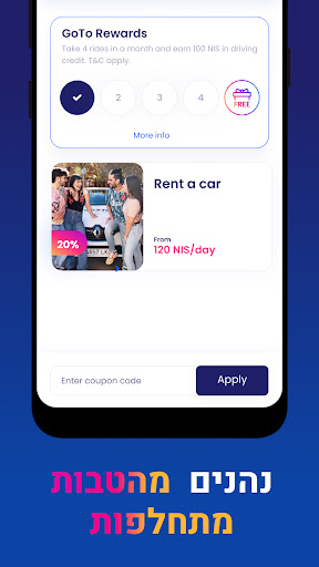 Wir bieten Transportsicherheit für alle, die sich in der Stadt und im Freien mit einer Reihe von Transportwerkzeugen leicht, unabhängig und genau während des Bedarfs bewegen müssen.Gotos Autovermietung ist viel mehr als Autovermietung, da unser Modell alle Bedürfnisse ermöglicht, die eine einfache Mobilität ermöglichen, und das ruhige Kopfstart mit Parkplätzen, Kraftstoff, Kfz-Versicherung, Autotest und periodische Autobehandlung.> Suche nach einem Mietfahrzeug?Laden Sie die GOTO -App herunter und wählen Sie den relevanten Ort aus, von dem Sie das Fahrzeug nehmen und zurückgeben.In der App finden Sie unter anderem die folgenden Mietoptionen: