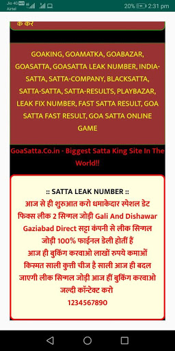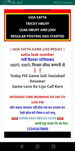 Download this application to check out live result, Daily Leak Jodi, Daily free game, Monthly Chart, Matka Chart, Satta Chart, All Goa Satta Game Chart and many more.