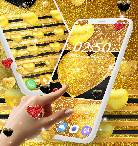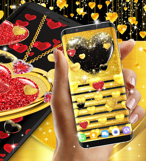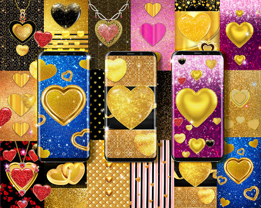 Erstaunliche Live -Wallpaper -App mit dem neuesten Trend in Hintergrundbildern.Gold, Glitzerherzen.Wenn wir sie kombinieren, haben wir diese großartige App erstellt, die Ihren Bildschirm wie kein anderer leuchten lässt!Was Sie in dieser App finden werden: