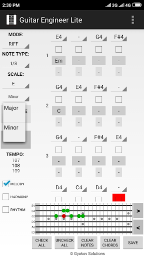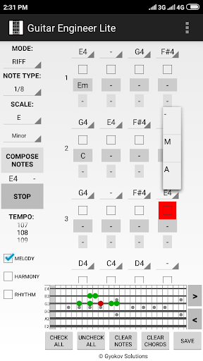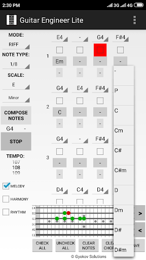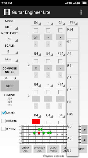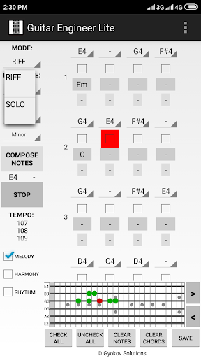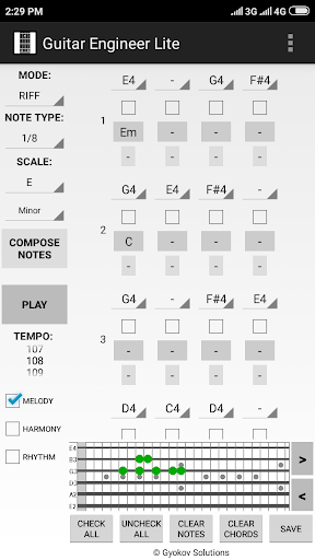 Guitar Engineer is a guitar riffs and solos auto-composition app. It helps composing guitar riffs and solos and accompanying harmony. No matter if you are a professional musician or just music enthusiast it will help you think out of the box and unlock your creativity.