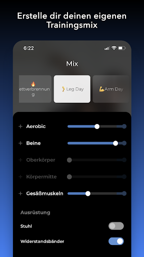 Wähle aus Voreinstellungen wie Leg Day, Cardio Killer, Granzkörper-Ohne Sprünge oder unserem Favoriten Bringing Sexy Back oder erstelle dir deine eigene Mischung aus Aerobic, Core, Gesäß, Beinen und Oberkörper