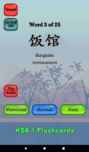 Think you know all 150 words? Time to try the full deck Mandarin Chinese flashcards pack. Studying Chinese has never been this simple. Pronunciation of each word is also available at the top of a button. Want to take another look at the Chinese characters on the previous card containing the Chinese word? Simply tap the previous button, or tap the previous button multiple times to go back to the beginning.