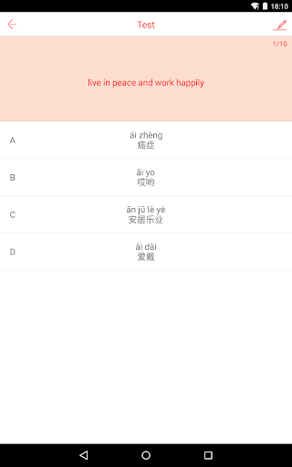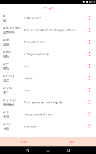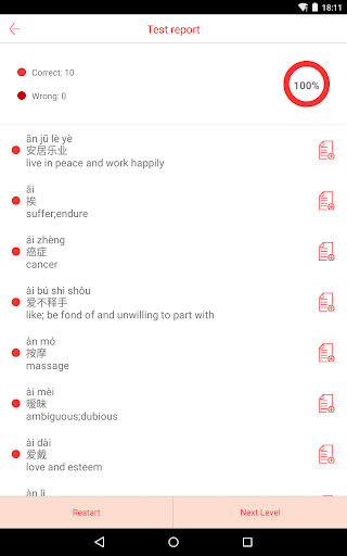 Die App setzt 10 Wörter in einen Block, damit die Lernenden sie ordentlich lernen können.Durch die Aufnahme des Lernprozesses können die Lernenden weiterhin auf dem grundlegenden Lernstudium lernen.Alle Blöcke, die alle Blöcke abschließen und weitergeben können, können die Lernenden alle Wörter in ganz HSK vollständig beherrschen.Auch die Lernenden können diese Wörter in der Sammelbox wiederholt üben, um den Speicher zu verbessern.