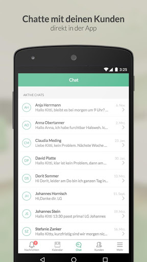 - Sie können jetzt direkt in der App mit Ihren Kunden chatten. Stellen Sie sich bei Ihren neuen Kunden vor, stellen Sie Fragen zu der Buchung und bauen Sie eine bessere Kundenbeziehung auf.