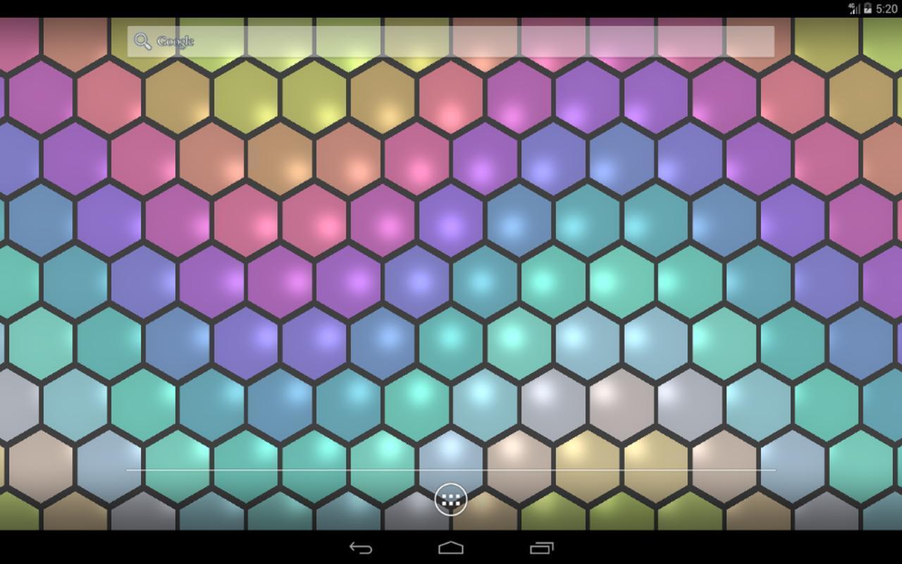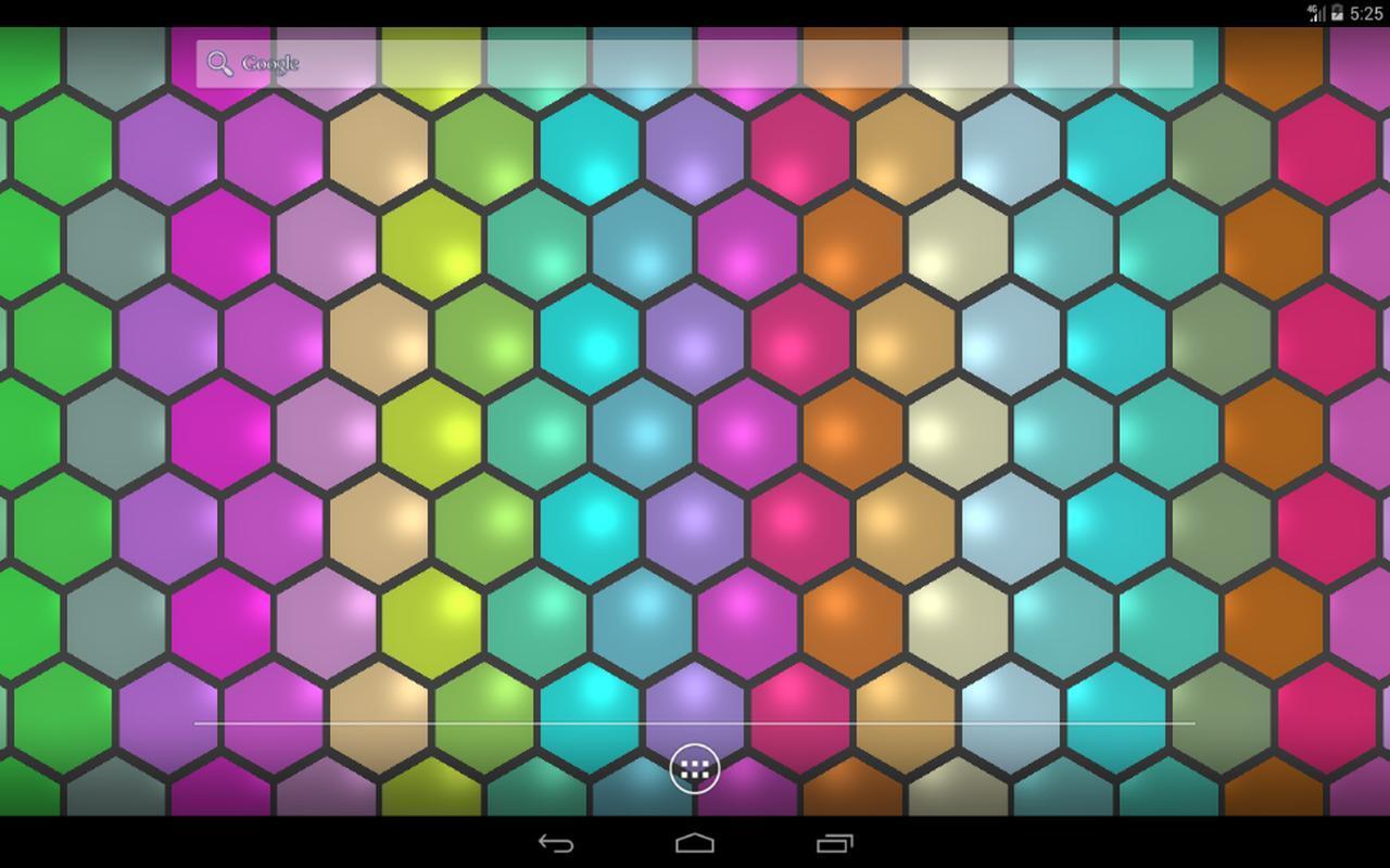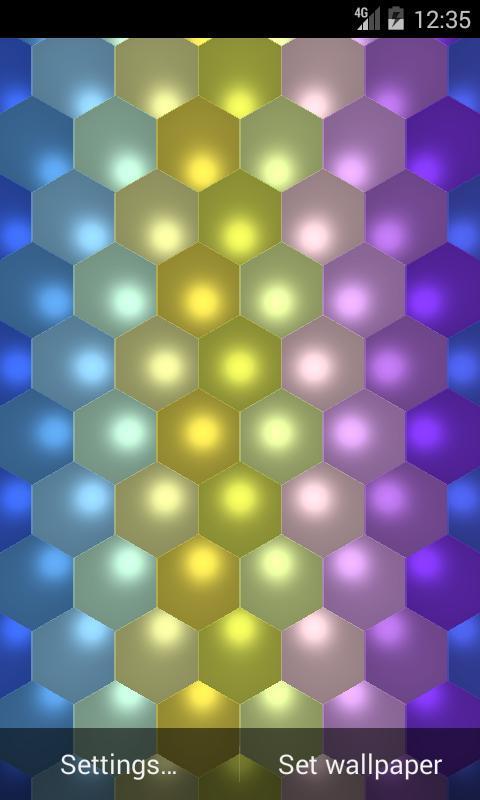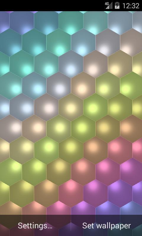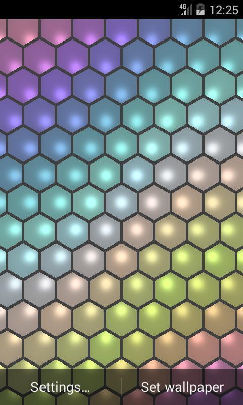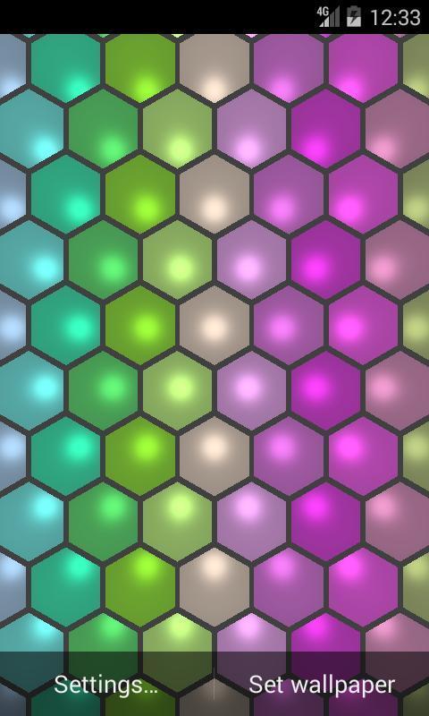 Hexagon wallpapers displays grid with run into colors, shine live wallpaper.