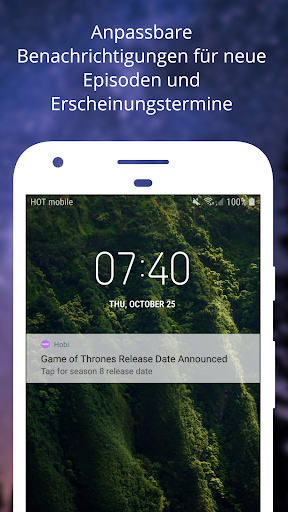 Hobi wird Sie benachrichtigen, wenn eine neue Staffel Premiere oder wenn eine neue Folge ausgestrahlt wird..