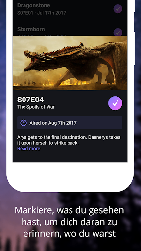 * Verwenden Sie den TV -Tracker, um sich daran zu erinnern, wo Sie sich befinden.Die nächste Folge, die Sie sich ansehen sollten, und die Episodeninformationen