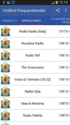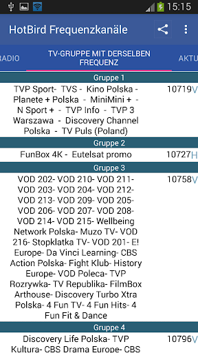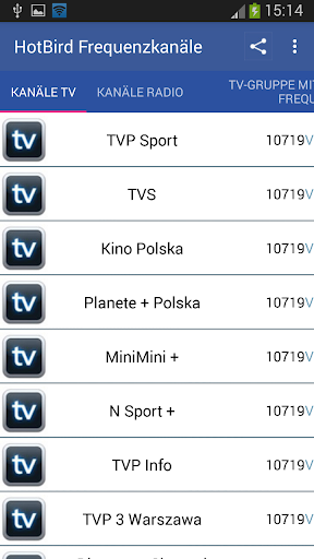 • Sie können die Liste der Fernseh- und Radiokanäle mit detaillierten Informationen über jeden Kanal zu suchen
