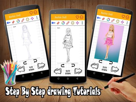 This app will teach you Learn: how to draw Barbie, how to drawing barbie, Learn To Draw barbie.
