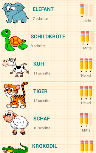 Es ist ideal für Ihre Kinder zu lernen, Spaß zu zeichnen. Die Anwendung umfasst viele Tiere nach Schwierigkeitsgrad eingestuft.