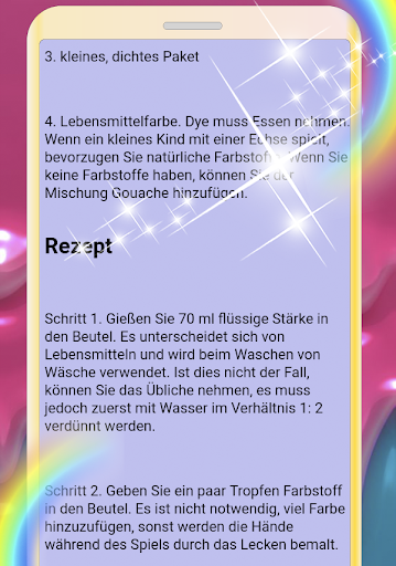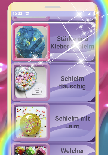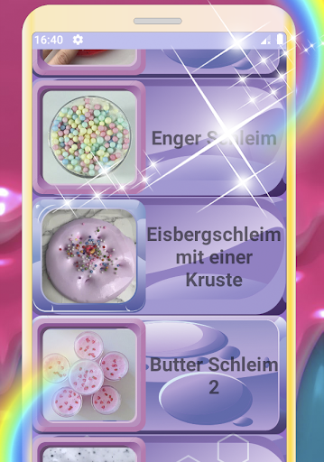 Die Anwendung ist verständlich zu bedienen und übersichtlich ausgerichtet. Im Hauptmenü können Sie sehen, wie der Schleim aussehen soll, und das Rezept aufrufen, wie Sie den flauschigen Schleim selbst herstellen können. Dabei werden die Zutaten und die schrittweise Ausführung des Schleimrezepts beschrieben. Sie werden mehr als ein Schleimrezept lernen. Und lernen Sie, wie man einen flauschigen Schleim ohne Borax, einen flauschigen Schleim ohne Kleber und einen flauschigen Schleim mit Rasierschaum herstellt. Das Spielen mit flauschigem Schleim ist gleichermaßen interessant, egal wie alt Sie sind! Es fühlt sich so klebrig und schleimig an, dass es ein Vergnügen ist, mit einem Schleim zu spielen.