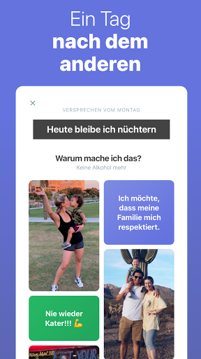 Neben der Aufzählung deiner nüchternen Tage hilft die App dir dabei, neue Gewohnheiten zu entickeln, und sorgt für ständige Motivation, indem sie dich mit einem breiten Netzwerk von Menschen verbindet, die alle das gleiche Ziel anstreben: jeden Tag auf's Neue nüchtern zu bleiben.