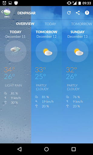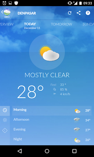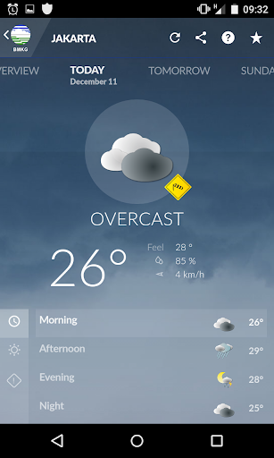 Android-Anwendungen entwickelte sich zur Vereinfachung der Wettervorhersage und der Frühwarnung von BMKG Indonesien (Meteorologie, Klimatologie und Geophysik-Agentur) über Mobiltelefon.