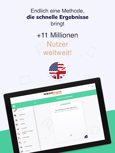 Sie wollen Business Englisch schnell lernen: Dann brauchen Sie die MosaLingua Methode. Innovativ und effizient wie sie ist, hat unsere Applikation schon über 8 000 000 Menschen auf der ganzen Welt ermöglicht, mit nur 10 Minuten am Tag Business Englisch zu lernen und dabei handfeste Ergebnisse zu erzielen!