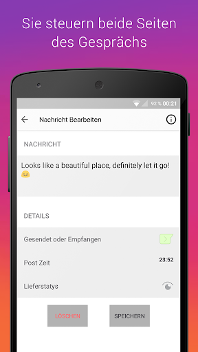 - Sie können die den Nachricht Status wie "Gelesen", "Zugestellt" und "Gesendet" selbst bestimmen.