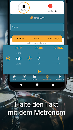 Instrumentive Musikapp & Logbuch zum Noten schreiben mit Metronom und Audio Recorder hilft dir, deine Übungs-Sessions in deinem Tagebuch zu organisieren und deine Ziele zu erreichen.