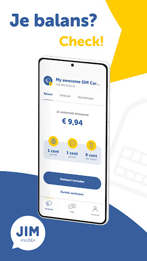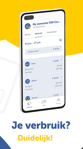 Sie können die Jim Mobile App mit Ihrem Jim Mobile-Raadkaart oder Abonnement verwenden.Für Ihre Nachladekarte können Sie den Verbrauch Ihrer Bundles im Detail konsultieren und erneut laden. Für Ihr Abonnement erhalten Sie einen detaillierten Überblick über Ihren Verbrauch und Ihre Bündel.