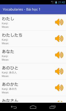 Learn: learn each words of lessons and include Kanji, Has practice to remember quickly