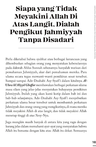Kedua, mereka mengatakan bahwasanya Allah berada dalam diri atau hati kita. Lebih-lebih lagi adalah mereka yang mengatakan bahwa Allah Ta’ala itu tidak di atas, tidak di bawah, tidak di kanan, tidak di kiri, tidak di depan, dan tidak di belakang karena konsekuensinya berarti Allah itu tidak ada. Maka siapa Tuhan yang mereka sembah selama ini? Adapun orang yang "diam" dengan mengatakan, "Kami tidak tahu Zat Allah di atas 'Arsy atau di bumi", mereka ini adalah orang-orang yang memelihara kebodohan.
