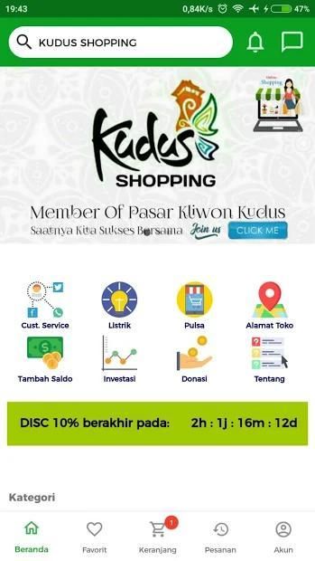 Kudus Shopping is a local online application that is intended for holy citizens and surrounding areas. In meeting online requests in the form of buying and selling services.