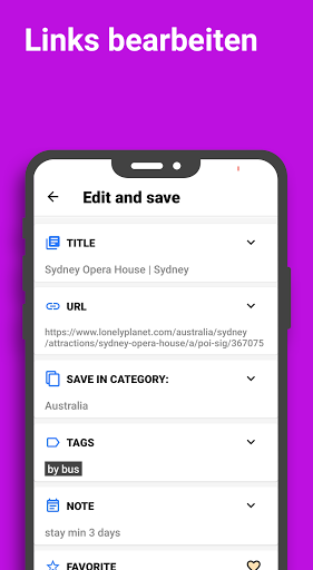 - Alle Funktionen, die Sie zum Bearbeiten eines Links benötigen: Titel, Tag, Notiz, Verschieben, etc.
