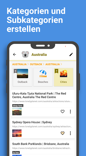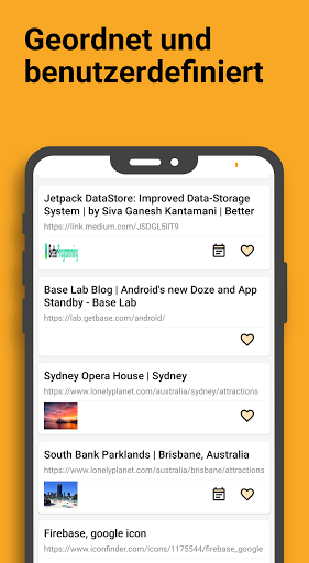 Speichern Sie Links einfach und schnell von überall her. Speichern Sie alles, was Sie entdecken: Bücher, Artikel, Einkäufe, Nachrichten, Rezepte.... Verwalten Sie alle in einer App und betrachten Sie sie später mit Hilfe einer benutzerdefinierbaren Anzeige.