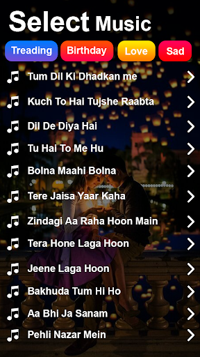 Die Lyrical Video Status Maker-App von Love.ly Mbit enthält eine große Anzahl von kurzen lyrischen Videostatus. Sie können jeden beliebigen lyrischen Videostatus herunterladen oder Ihr Video mit Ihren eigenen Bildern erstellen.