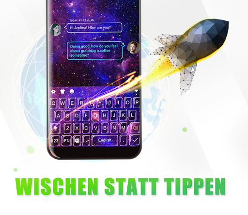 Versuchen Sie, Ihren Finger schnell und präzise über die Tastatur zu schieben. Keine Notwendigkeit, Buchstaben für Buchstaben zu schreiben!