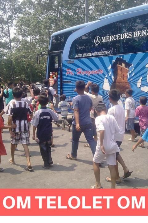 Simply stand on the side of the road, and asked telolet to fathers bus driver, hatipun so joyous with friends.