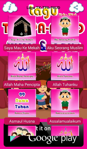 Die Offline-Anwendung enthält eine Sammlung von TPA-TPA- und Paud-Songs, die Anwendungen sind, um Kinder mit Songs zu erziehen, die dazu passen, dass Kindercharakter zum Besseren gebildet werden.