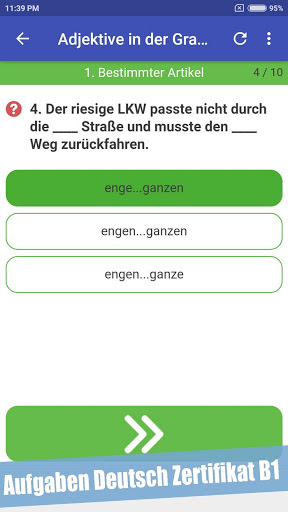 Grammatik aufgaben B1 prüfung ist ein - Applikation zum Üben von schwierigen Wörtern der Deutschen Sprache. Hier findest du Übungen zur Grammatik wie beispielsweise den 4 Fällen (Kasus), Präpositionen oder Bindewörtern. Die Übungen besitzen ein Deutsch-Niveau von B1.