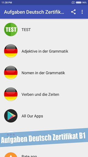 Bereitet auf die B1 - Prüfung. Beste kostenlose App mit Aufgaben Deutsch Zertifikat B1 prüfung.