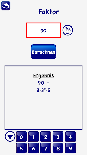 Faktorisierung : Sie können Zahlen bis zu 9999999 in Primfaktoren zerlegen und herausfinden, ob eine Zahl Primzahlen sind oder nicht.