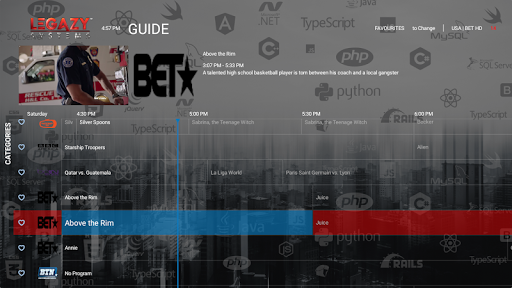 Legazy Systems IPTV -Player ist eine Anwendung, die Ihren Unterhaltungsinhalt von Ihrem IPTV -Anbieter abspielt und Ihnen die Möglichkeit bietet, den Inhalt Ihres Anbieters auf unterschiedliche Weise anzeigen zu können."Filme" & quot;"TV -Shows" & quot;und "" einholen "& quot;mit verschiedenen "Skins" & quot;Das passt sich an die Art und Weise an, wie Sie Ihre Programmierung sehen möchten.Diese Version ist Android & quot; TV -Box & quot;Vor allem und ist auch funktional für (Smartphones, Fire TV -Stick, Tablets und andere).Ermöglichen Sie sich, jederzeit eine angenehme Erfahrung in der Art und Weise zu machen, wie Sie den Inhalt Ihres Anbieters anzeigen.