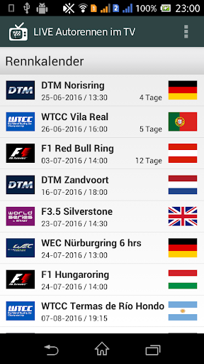 Diese App zeigt eine Übersicht der Autorennen die LIVE im Fernsehen übertragen werden. Der Rennkalender enthalt Autorennen die in den Free-TV Fernsehsendern der Mitteleuropäischen Länder übertragen werden (einschließlich Deutschland), und darüber hinaus Rennen, die über Live-Streams im Internet angeboten werden.