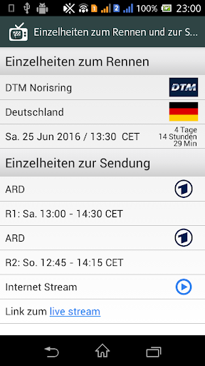 Sollte keine Internetverbindung gefunden werden, dann sind die gezeigten Informationen über das Rennen dem Inhalt, der zum Zeitpunkt der letzten Internetverbindung lokal gespeichert wurde, gleich.