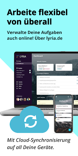 Egal ob im Büro, im Homeoffice, mit dem Laptop auf der Couch oder am Strand - mit Lyria bist Du vollkommen ungebunden. Du hast jederzeit und von überall Zugriff auf alle Projekte und Aufgaben. Für eine größere Ansicht am Computer und am Laptop steht Dir dabei unser komfortables Webportal www.lyria.de zur Verfügung.