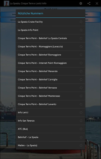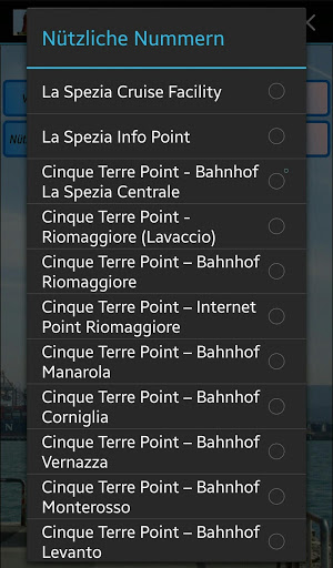 - Nützliche Telefonnummern (zB Infopunkt 5 terre, öffentliche Bibliotheken, Rathaus)