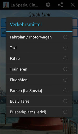 - Fortbewegung (zB Fahrpläne, Bus 5 terre, Fahrplan, Taxi)