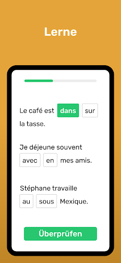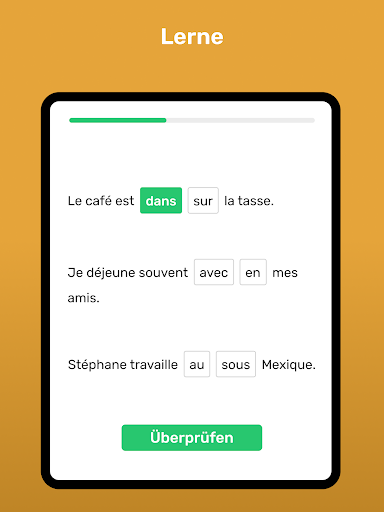 💡Ein für dich entwickelter Lernprozess, der einfach ist und dich führt: Du wirst merken, dass du jeden Tag mehr und mehr Französisch lernst. Jeder Satz, jede Übung, jede Überprüfung und jede Leseübung wurden sorgfältig für dich ausgewählt.