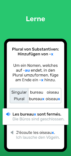 📇 Vokabeln: Lerne die Bedeutung, Aussprache und Nutzung mit Aktivitäten, die an deinen Fortschritt angepasst sind.