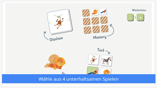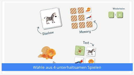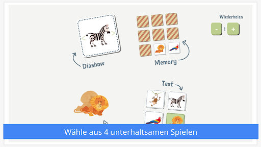 • Lernen und spielen: herausfordernde Spiele (Diashow, Konzentrationsspiele, Puzzle und Quiz).