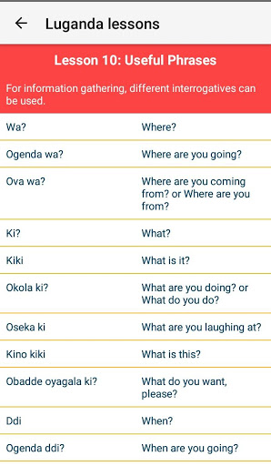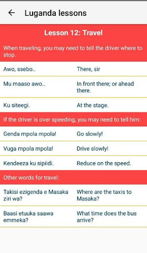 Diese App basiert auf einer Überlebens-Luganda-Sprachlernproduktion, die von den Vereinigten Staaten Peace Corps zur Verwendung von ihren Freiwilligen zubereitet wird, die in Uganda leben und arbeiten.