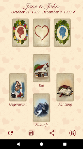 Das besondere Deck, das von Madame Lenormand gestaltet wurde, unterscheidet sich von allen anderen Wahrsagekarten, die dir bisher begegnet sind! Die detaillierten Interpretationen der Karten werden wichtige Leitlinien für deine Zukunft enthüllen und dir helfen, die richtigen Entscheidungen in verschiedenen zwischenmenschlichen Situationen und Liebesbeziehungen zu treffen!