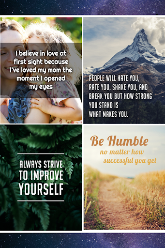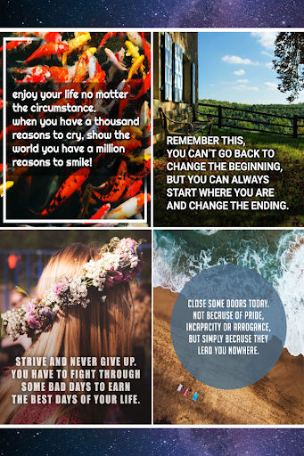Teilen Sie die besten Lebensbilder mit grafischer Hintergrundqualität aus unserer einfachen App und seien Sie heute Inspiration und Motivationsquelle für jemanden! Ein einfaches inspirierendes Zitat kann das Selbstvertrauen von jemandem aufklären und stärken, wenn es darum geht, dem bevorstehenden Tag entgegenzutreten.