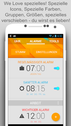 Schalte deine Wecker anhand Gruppen an und aus - setze Symbole & Farben, verschiebe & kopiere Wecker, anpassen, so wie es deinen Herz begehrt!